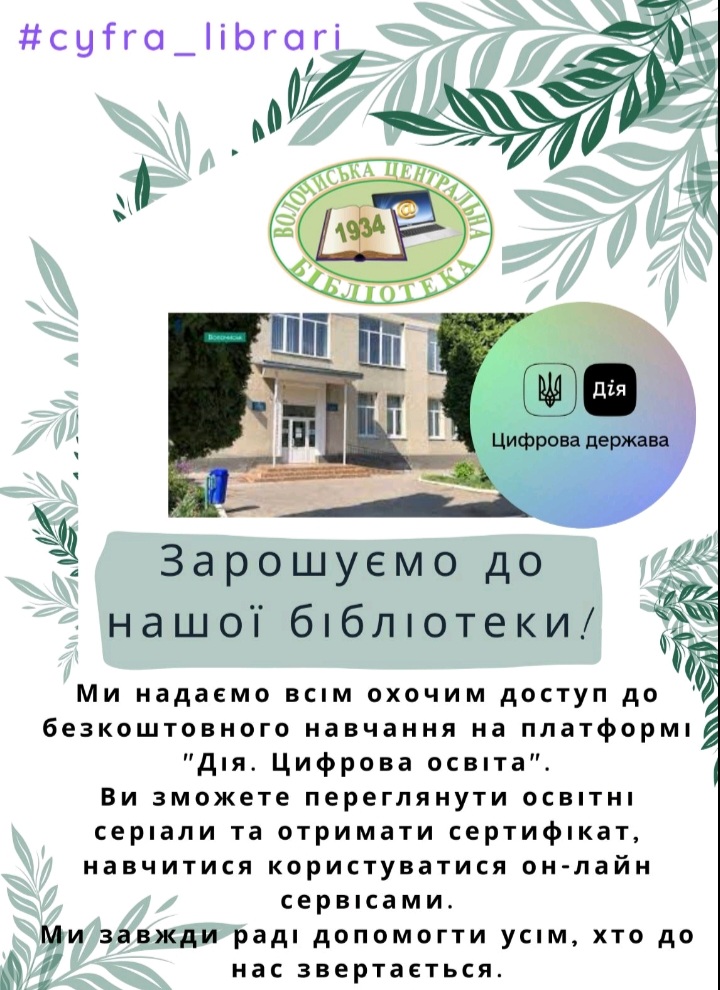На платформі Дія.Освіта запущено два нові інструменти для підвищення цифрових навичок бібліотекарів: рамку цифрових компетентностей та Цифрограм для бібліотекарів. Ці інструменти спрямовані на підвищення професійних компетенцій та цифрових навичок координаторів бібліотек-хабів цифрової освіти. Завдяки рамці цифрової компетентності та тесту Цифрограм бібліотеки зможуть краще підготуватися до підтримки спільнот у навчанні цифрової грамотності та використанні цифрових ресурсів, що сприятиме розвитку цифрового суспільства . Із 2020 року за ініціативи Мінцифри в Україні працює мережа хабів цифрової освіти, більшість з яких створена на базі бібліотек. Вони відіграють важливу роль у підвищенні цифрової грамотності українців, забезпечуючи відвідувачам доступ до сучасних технологій, можливість покращувати їх цифрові навички та отримувати підтримку в освоєнні нових знань. Проєкт реалізовує Міністерство цифрової трансформації України у співпраці з UNDP Ukraine / ПРООН в Україні у межах «Проєк...